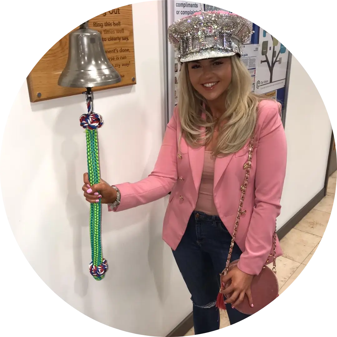 In February 2020, after completing my course of radiotherapy, I rang the bell to mark the end of my treatment. I was surrounded by my family and friends, as well as the staff who had seen me through my journey. It was such a special and emotional moment to share with them all.
